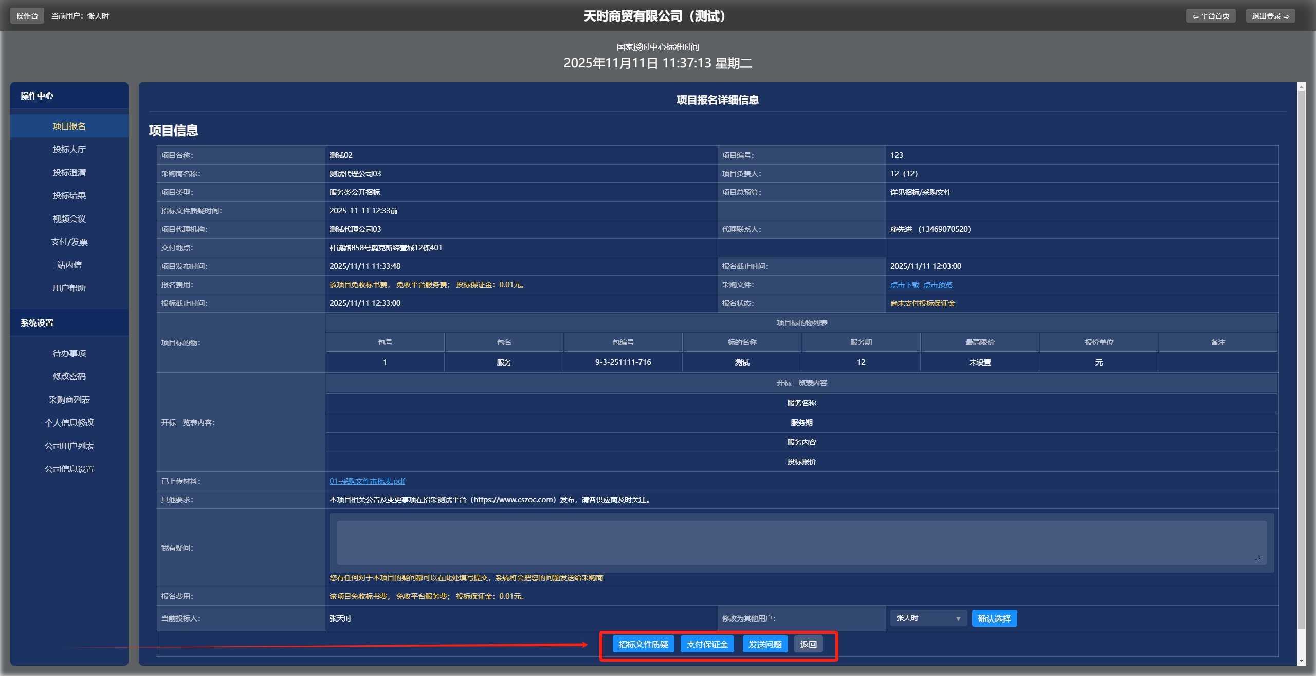 (一)报名审核完成后(邀请项目无须审核)后,需要支付保证金的项目可以在登录后的“待办事项”中看到<支付保证金>,然后点击操作栏中的<项目详情及报名>
